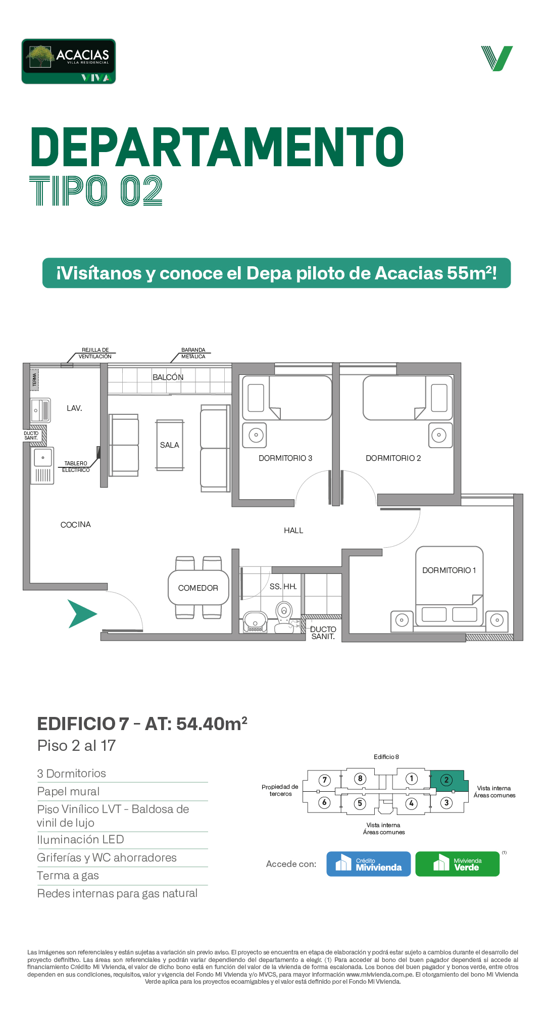 Acacias Villa Residencial es el condominio ideal para vivir a tu manera, con departamentos de 3 Dormitorios, con o sin balcón, desde 55m2 y 62m2, pensados para adaptarse a tu estilo de vida: si buscas independizarte o si buscas el espacio ideal para vivir en familia y disfrutar cada etapa.