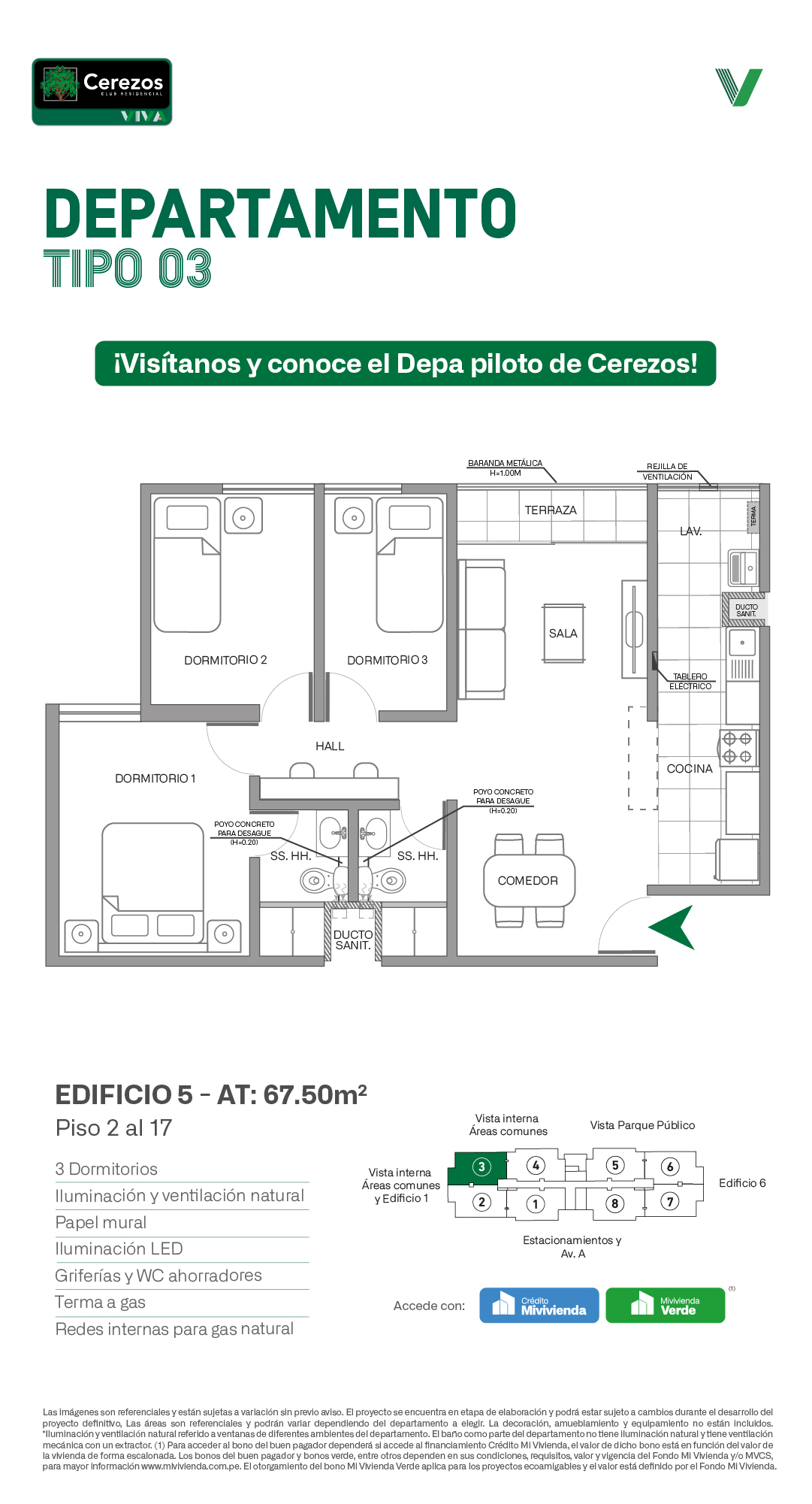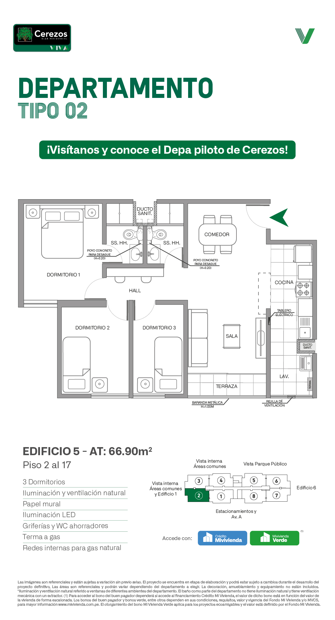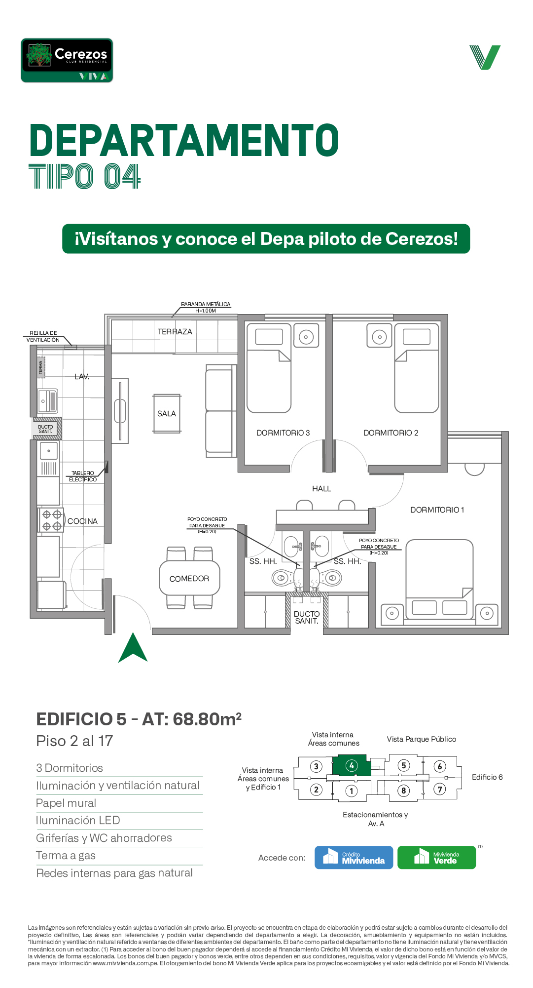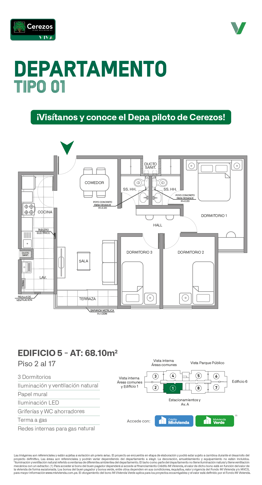 Cerezos Club Residencial es el Condominio Club perfecto para disfrutar en familia de un estilo de vida único en la zona más consolidada de Comas. Descubre Flats y Dúplex de 3 Dormitorios, 2 Baños y Terraza, además de increíbles áreas comunes como piscina recreativa, zona de parrillas, sala de jóvenes y losa deportiva y más. Con 4 edificios entregados exitosamente, nos encontramos en la ¡Pre-Venta del 5to Edificio!