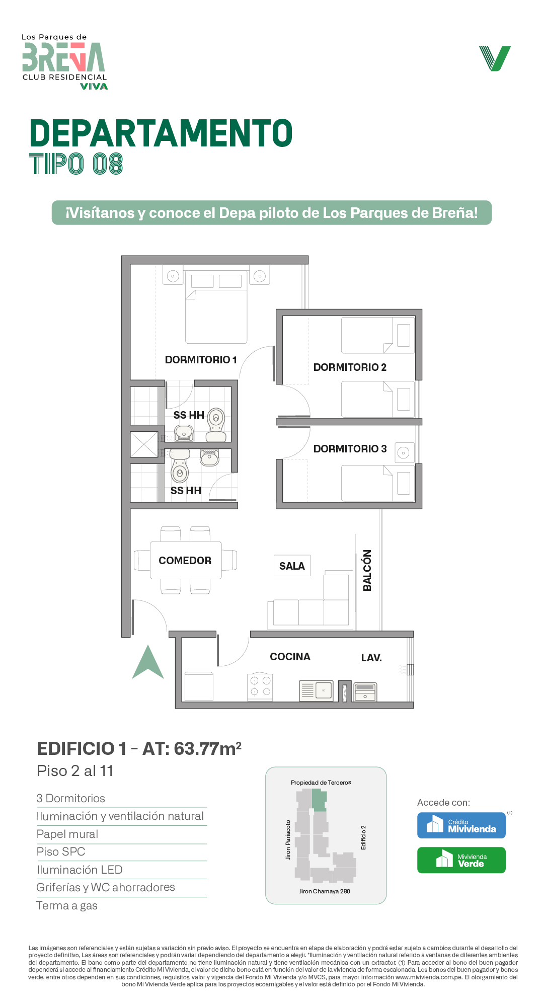 ¡Tu Depa propio en Breña está más cerca de lo que imaginas! En Los Parques de Breña Club Residencial encontrarás departamentos de 1, 2 y 3 Dormitorios, desde los 40m2 hasta los 63m2, con un primer edificio para Entrega en Diciembre 2025 y un segundo edificio en Pre-Venta ¡Vive en un condominio club exclusivo con solo 4 edificios y 14 áreas comunes diseñadas para disfrutar cada día, en una ubicación privilegiada en Breña!