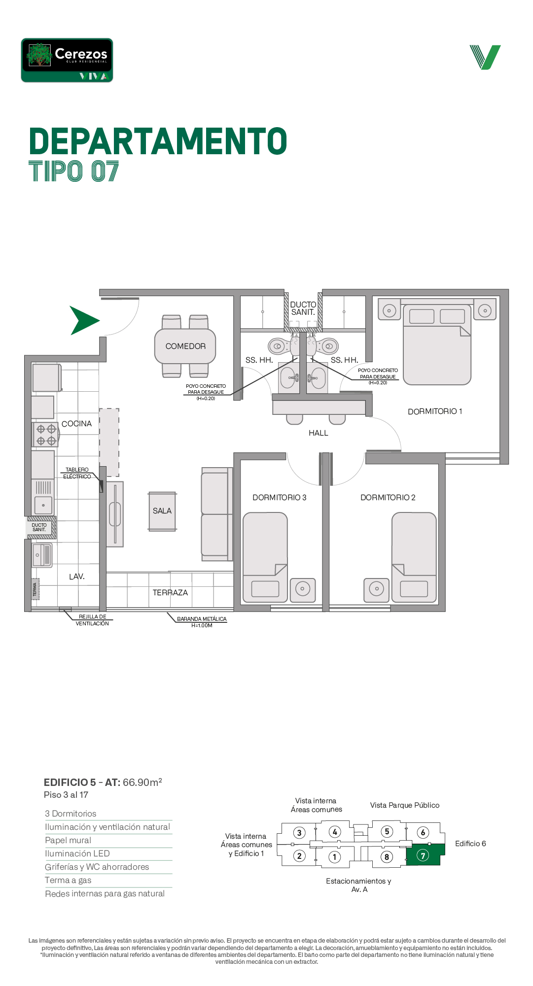 Cerezos Club Residencial es el condominio ideal para quienes buscan vivir con estilo y comodidad en Comas. Disfruta un verdadero estilo de vida tipo club con 11 áreas comunes como piscina, zona de parrillas, sala de jóvenes y losa deportiva, entre otros. Flats y Dúplex de 3 dormitorios con terraza, pensados para brindarte el espacio y confort que tú y tu familia merecen.