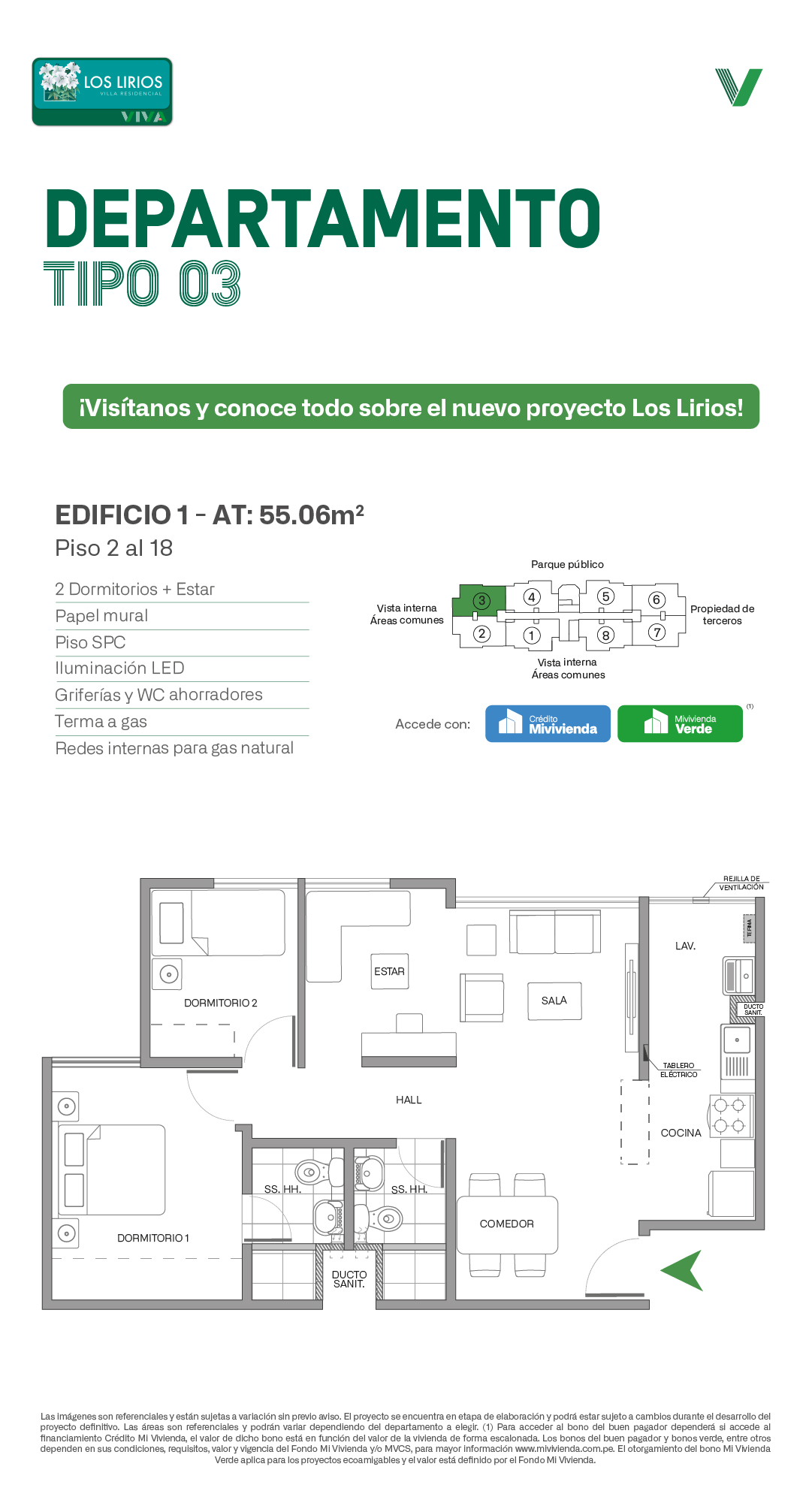 ¡Un nuevo proyecto llega a Comas! Los Lirios Villa Residencial es el condominio ideal para vivir a tu manera, con departamentos de 55 m2 en el Edificio 01 con 3 Dormitorios y 2 Baños. Pensados para adaptarse a tu estilo de vida: si buscas independizarte, esta es tu mejor opción. Un Condominio Residencial que tendrá más de 12 increíbles áreas comunes donde destaca su losa deportiva para disfrutar los fines de semana con amigos sin salir de casa. ¡Aprovecha los precios de Lanzamientos!
